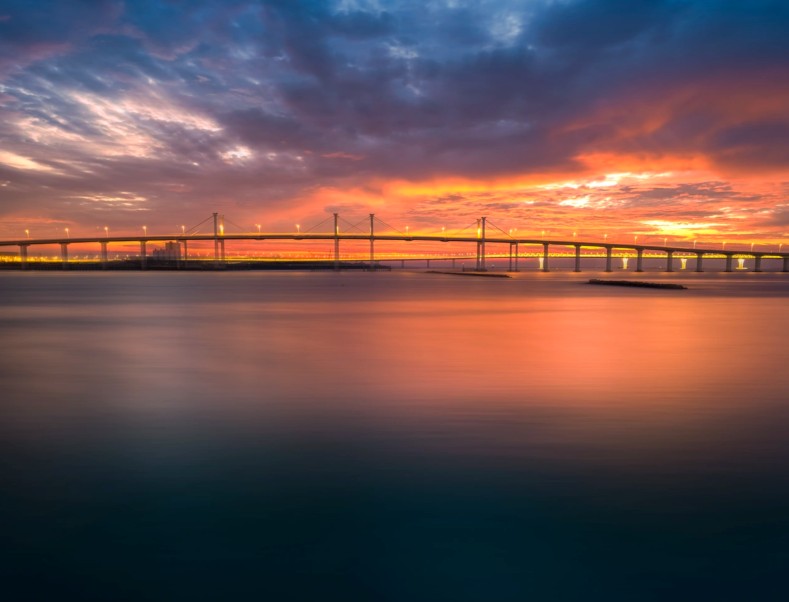 思拍出电影感早霞?直奔情侣路就对了!尤其是香炉湾沙滩到爱情邮局灯塔这一段,险些即是为“出片”而生。天刚蒙蒙亮,海面浮着薄雾,珠海渔女雕像在霞光中慢慢“上线”,手里的珍珠泛着柔光,仿佛在跟你打呼叫。太阳一跃出海面,暖红色的光辉立马给对岸的澳门塔、西湾大桥镶上金边,再配上岸边摇曳的椰林,画面档次感平直拉满。爽直找个角度,以灯塔当远景、大桥作念指点线,咔嚓一下——恭喜你,成绩一张自带故事感的跨城大片!