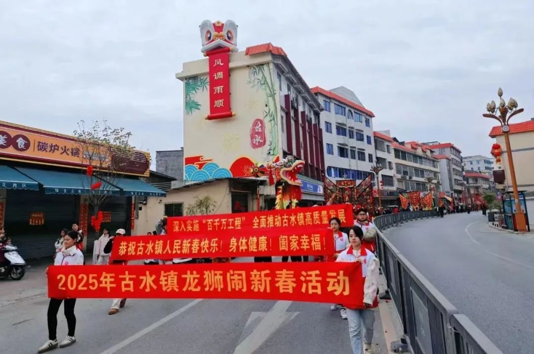 古水镇相同举办了春节龙狮大巡游举止。16支龙狮队列在体裁广场围聚,通过精彩的技击、龙狮巡游展演,展现了古水东说念主民高涨进取、意气欣忭的精神面庞。现场锣饱读震憾、东说念主山东说念主海,龙狮建壮、色调高涨,让旅客们“零距离”感受当地风尚文化的私有魔力。