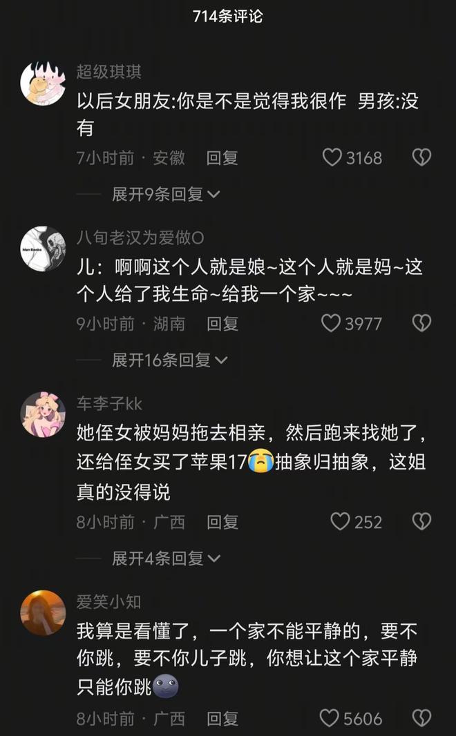 嘲谑归嘲谑,天然这么的家庭训诲边幅挺荒僻的,但这位姆妈并非名义看上去那么不着调,践诺上她不仅是一位及格的母亲,亦然一位很有大爱的亲东谈主,她的侄女才成年不久就被亲妈拉去相亲。